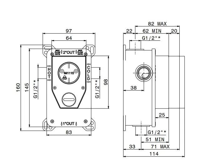 10843KM.00.000 Универсальная внутренняя часть для механического смесителя на два потока для душа